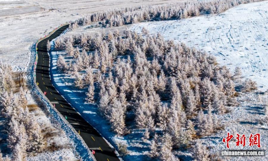 Осенний иней украсил лесной парк Хадамэнь в Северном Китае 2025.10.22 11:26 -