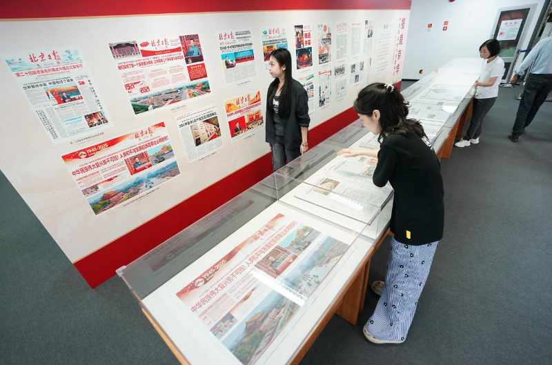 北京日报客户端记者 方非摄从1952年10月1日《北京日报》创刊号,到2008年8月9日《北京日报》关于第二十九届夏季奥林匹克运动会开幕的报道,再到2021年7月2日《北京日报》庆祝中国共产党成立100周年的报道,再到2025年9月4日《北京日报》纪念中国人民抗日战争暨世界反法西斯战争胜利80周年报道……在现场展出的背景板呈现出记录历史瞬间的精彩版面。