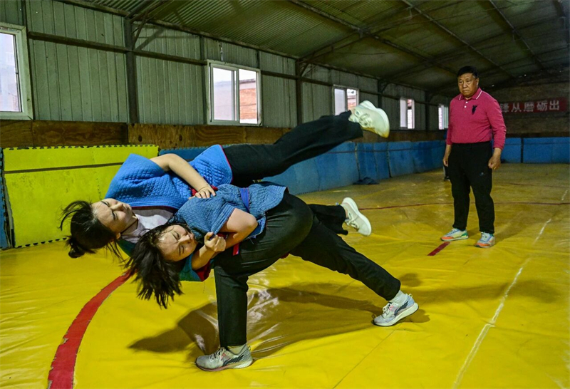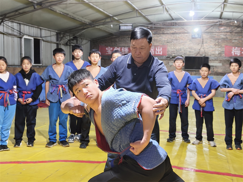 “中国式摔跤是老祖宗留下的瑰宝,不能让它断了传承。”白鹤江说,2013年,儿女们都已成家立业,他决定重拾自己的老把式。