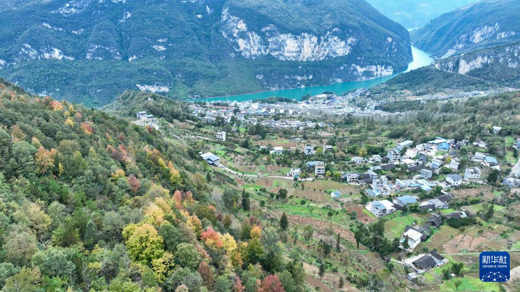 重庆市酉阳土家族苗族自治县龚滩镇层林尽染(11月18日摄,无人机照片)。