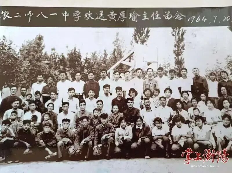 1964年7月20日,新疆生产建设兵团农二师八一中学欢送黄厚瑜赴农二师二十九团中学工作留影。资料图片