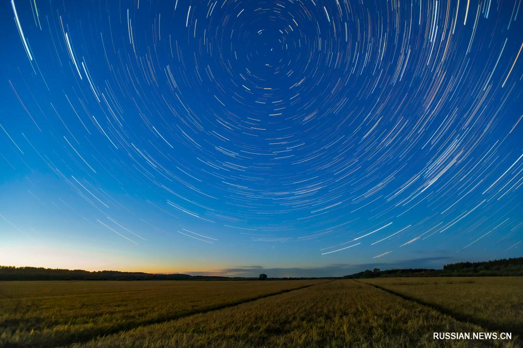 Сбор урожая в северо-восточной китайской провинции Хэйлунцзян под звездами