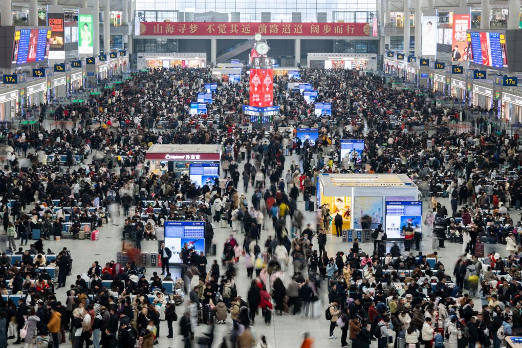 又是一年春运山河行走间铺展团圆画卷在这流动的宏大图景里扣人心弦的笔触藏于每个具体而鲜活的表情里2月2日拍摄的上海虹桥火车站候车大厅。新华社记者王翔摄行李虽重回家的脚步轻盈下一站,就是团圆2月2日凌晨,旅客在南京火车站乘车出行。新华社发(苏阳摄)2月2日,在江苏海安站出站口,小朋友跑向前来接站的家人。新华社发(顾彬斌摄)2月2日,旅客在沪昆高铁贵州铜仁南站转乘。新华社发(胡攀学摄)2月2日,在山东滕