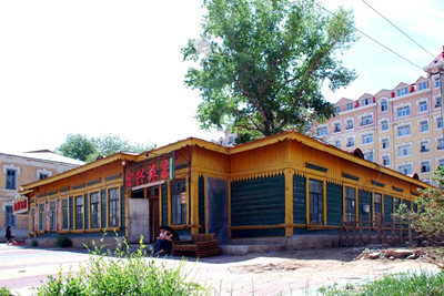 上世纪70年代,这座俄式建筑就作为牧民招待所了,又在后院建起了旅客大食堂。新巴尔虎右旗的蒙古族牧民进城后几乎都入住在这里,一是紧邻长途客运站,来往上下车都方便,二是这里住宿价格要比其他旅馆、招待所便宜一些,三是服务员的优质服务使得牧民有进店如回家的感觉。由于蒙古族牧民常年食肉,汉族人偶尔进到店里就能闻到满走廊的膻气味。