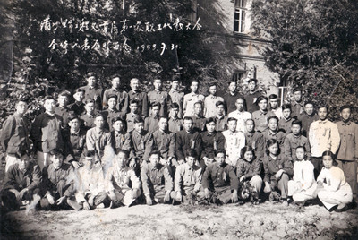 2—1.市工程处首届职工代表大会全体代表在后楼院内合影留念。(1958年摄)