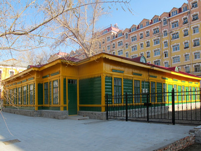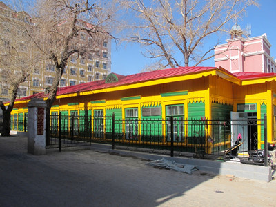 这座俄式老建筑呈现“凹”字造型,兴建于1907年,原始编号为238号,位于一道街原苏联驻满洲里领事馆西侧,笔者对这座建筑的最深记忆就是它曾为牧民招待所。2016年,地方政府开始维护、修缮这座精致的文物老建筑,准备在这里创办满洲里外贸博物馆。