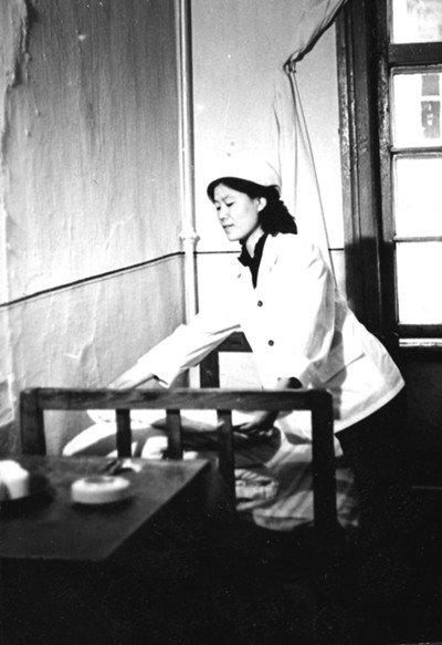 2—4.客房服务员认真整理被褥,做到房间整洁。(1983年摄)