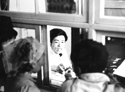 2—2.为新右旗蒙古族牧民旅客办理入住登记手续。(1983年摄)