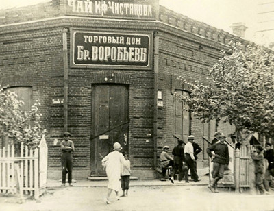 9.位于二道街街口东南角,俄文牌匾为“茶叶店”,由哈尔滨著名商人齐斯加诺夫开办。(1929年摄)