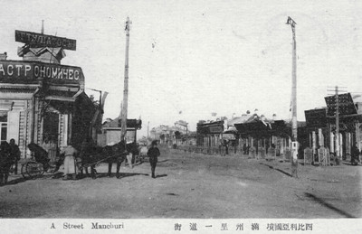 1921年4月,满洲里商会职员统计,中国人在“满洲里大街”开办门市的有:天成永商号,店主杜万运;福泰源商号,店主徐桂亭;双兴盛商号,店主付腾云;福升东商号1,店主王世庆;福升东商号2,店主王殿顺;永升栈商号,店主腾纬;源茂盛商号,店主金名祥;东和永商号,店主李旭东;德顺水商号,店主杨镐亭;富源商号,店主孙身修;兴盛昌商号,店主张寿山;义增泰商号,店主方贻琛;双兴茂商号,店主邱嶙;乾昌盛商号,店主吕庚年;东兴茂商号,店主杨贤政。以上商号均为开设杂货洋行,一共15家,占商会职员统计总数28户的53.57%,可见仅以当年的商会职员为例,一条街占据了一个城市一半以上的商会职员门市。