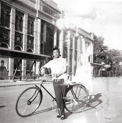 青年时代的作者在人民银行大楼前留影。(约1967年摄)
