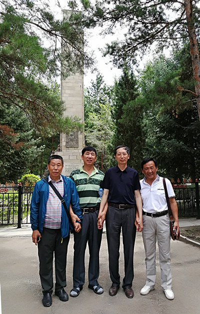烈士公园留影,左起:杨广旺、吕宝国、王铁樵、王广杰。(2018年摄)