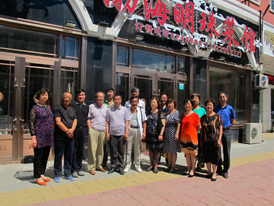 2018年7月17日,陈鲁毅同学忙中偷闲,驾车赶来陪同王广杰、杨广旺赴国门景区游览。中午我在“渤海明珠”宴请王广杰、杨广旺同学,满洲里同学姜华、曾宪生、尹秀海、孙贵顺、吕宝国、陈鲁毅、王洪喜、曹秀玲、杨岭芝、于春梅、宋秀琴、韩玉琴、刘义全参加聚会。全体同学在饭店前合影留念。聚会后,部分同学到我的工作室小坐。晚上,在“育林砂锅”几位男生小聚,平时不善言语的刘义全喝得兴奋了,滔滔不绝地讲起了魔方的奥秘。