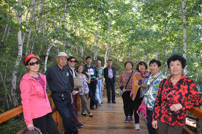 2016年8月27日,我们一部分同学与陈老师赴根河与额尔古纳两日游,我的儿子王博驾驶一辆阁瑞斯面包车,肖树才同学驾驶一辆越野车,杨岭芝、韩玉琴、金书贤、董晶洁、曹秀玲、吕宝国、孙贵顺、刘义全、尹秀海等11名同学与陈秀梅老师一路同行。走边防路沿额尔古纳界河一路北上,在黑山头转向拉布大林,在拉布大林用餐后,沿根河穿林海抵达敖鲁古雅,参观展览馆,游览敖鲁古雅使鹿部落,与驯鹿、松鼠近距离接触。傍晚在根河市一家饭店聚餐,吃的是农家饭,喝的是林区酒,大家都很尽兴。晚上入住根河市冷极58度宾馆。8月28日清晨,陈老师与同学们到早市购买了山野果。早餐后,游览了根河吊桥风景区,大家一边游览一边拍照,一边讲述着昨晚住宿发生的故事。有一例应该载入大事记,韩玉琴与陈老师住一间,就要闭灯休息了,可手机还没有充足电,玉琴不知关掉开关闭灯,竟然将门卡拔掉断电,对老师说:“手机只有等明天起早再继续充电了。”老师连连说:“那这样就太不合理了。”害得两人起早赶紧插上门卡抓紧为手机充电。大家听后大笑起来,可我笑过之后却有欲哭的酸楚,我们这一代人呀,忙工作,忙子女,忙完了工作可算退休了,又开始忙孙子孙女,几乎没有时间出门转一转,否则怎么能犯这样低级的常识性错误呢,我们真是奉献、牺牲的一代人,可悲可叹的一代人呀!车正在行进当中,树才的车一直跟在我们面包车的后面,可曹秀玲同学却惊呼一声:“哎!这辆车怎么总是跟在我们后面?”是瞬间失意了吗?还是我们已经老了?大家又是一阵大笑。返程中又在拉布大林吃中饭,下午游览亚洲最大的额尔古纳湿地公园,陈老师与同学们一路沿栈道走着,丝毫没有疲惫的样子,大家都投去敬佩的目光。陈老师与我们大部分同学一样都是属马的,她比我们大一轮,时年已是74岁的年龄,可是精气神却一点不比我们差,陈老师的身体健康也是同学们的福分呀!晚上顺利返回满洲里,本来打算一起吃晚餐,由于陈老师另有安排,大家只有依依不舍地将她送到所住小区大门口。8月30日,陈秀梅老师乘火车返回北京。此次陈老师回满与同学们团聚,特别是利用两天时间去林区与同学们同吃、同住、同游览,拾回了往昔岁月,加深了师生情谊,留下了永恒记忆。