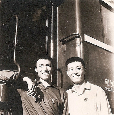 即将离开家乡的天津知青在向前来送行的亲人们挥手告别。