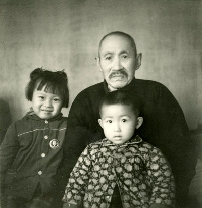 曾祖父高进勋与其三子高学信的两个女儿高玉红、高玉兰合影。