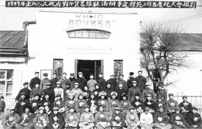 1949年,东北人民政府对外贸易部驻满办事处模范工作者合影。