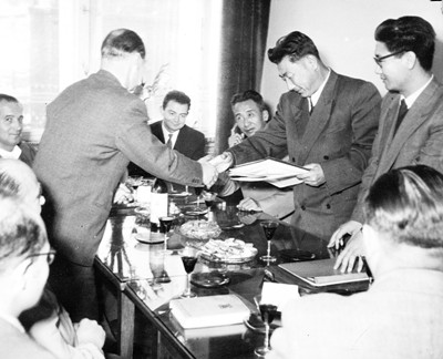 第一次会见是我和贾石同志出面的,我算是中方的副代表,但实际上是干翻译员的活儿,不过所谈的问题都是我们事先研究好了的。第一次会见双方共同研究一番工作,对运输工作如何准备、如何进行等问题进行了讨论,然后就散会了。