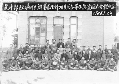 1948年,商业部驻满洲里办事处全体功臣及各单位负责同志合影,第二排右9为常彦卿。