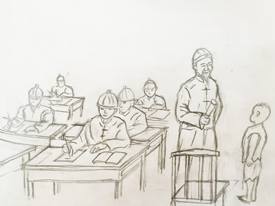日子一长,继母分配的活他都干得比较熟练了。继母每天带着弟弟总是早出晚归,继母一走就把他反锁在屋里。这年夏天,屋里热开着窗户,忽然传进来朗朗读书声,再一细听是私塾里孩子们的读书声,他一个人扒在窗户上越听越上瘾,真是好羡慕啊!此时,父亲临终时对他说的话不由得涌上心头:“初娃,你快4岁了,有句话我要交代你记住,万般皆下品,唯有读书高,以后日子再苦再难你也要想办法读书”。