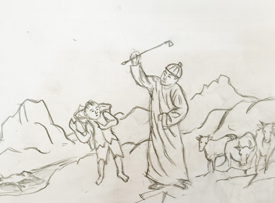 大约过了半年多,一天快到中午时,他匆忙回家做饭竟没发现屋门已经打开,照样从门槛下钻进屋,一抬头继母正恶狠狠地盯着他,活像一只等待猎物的饿狼……