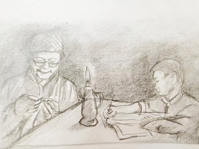 然而,一身黑制服,一顶黑制帽,初娃是无论如何也买不起的。三伯母的家境也是极度清苦,可这个刚强善良的女人硬是咬着牙卖了一石半稻谷,换回了够做一套制服的白色粗布,又用颜料染成黑色,为初娃做了一套黑制服、一顶黑制帽,初娃终于能穿着新校服上学了。那时古宋县城还没有煤油灯,家家点灯照明都是用菜籽油,三伯母平日做饭极少用菜籽油,省下来都给初娃点灯学习用。有时三伯母一觉醒来,灯盏里的菜籽油快熬干了,初娃还在傍着油灯读书。