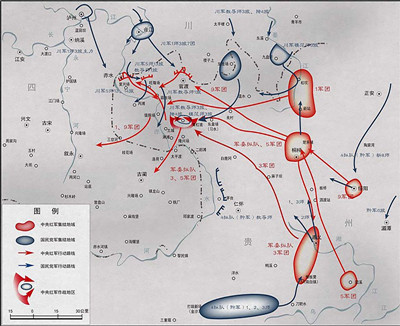 1月18日,会议刚结束后,按原计划毛泽东指挥中央红军挥师北上,直指川黔交界的土城,拟进入川南,准备从泸州和宜宾之间渡过长江,与活动在川北的红四方面军会合。蒋介石和四川军阀刘湘调动四十万大军围追堵截,妄图前后夹击,将红军主力全部歼灭在川黔地区。