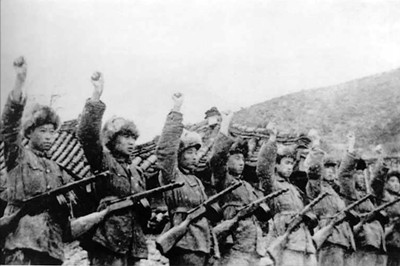 1950年11月,中国人民志愿军某师在长津湖战役发起前宣誓。