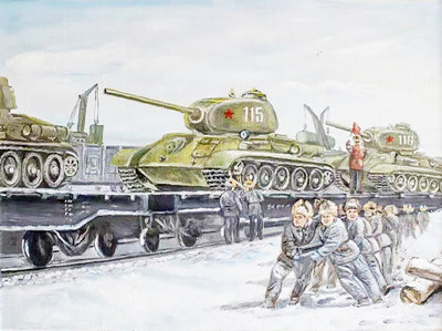 志愿军向前线运送军粮。