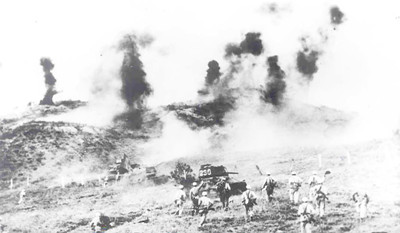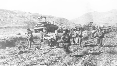 金城战役中,志愿军进攻敌方阵地。