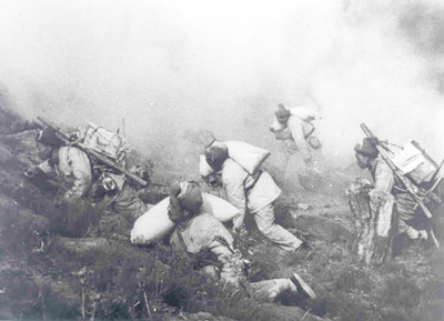 志愿军某部在龙源里追击美军部队。