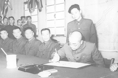 1953年7月28日,中国人民志愿军司令员彭德怀在《朝鲜停战协定》及临时补充协议上签字。