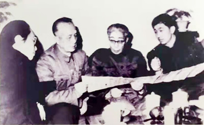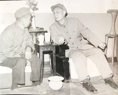 1965年,刘复初参加刘筱圃同志遗体告别仪式后和原八路军总政治部主任傅钟亲切交谈。