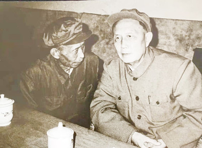 刘复初与原川滇黔边区游击纵队副大队长兰澄清亲切交谈。