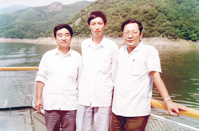 1992年8月18日,周吉良、作者与吉林市委办公厅秘书处处长夏中华在松花湖游船上合影。
