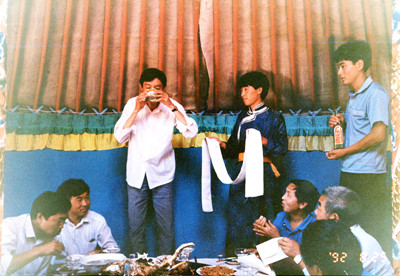 1992年8月25日,作者在察尔森水库蒙古包参加聚会。