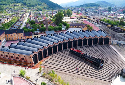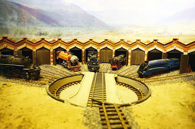 扎赉诺尔区蒸汽机车博物馆展出的中东铁路时期机车库复原沙盘。