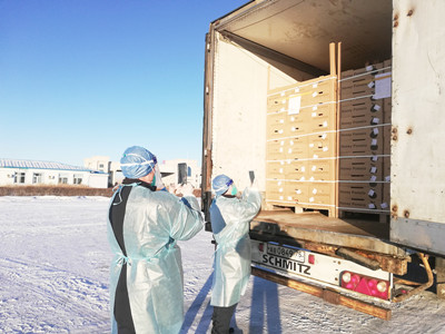 正值隆冬时节,满洲里海关所属满洲里十八里海关关员们顶着寒风开展监管查验,全力保障载有出口洋葱、大葱、大蒜等葱属蔬菜的运输车辆快速通关运往欧洲。