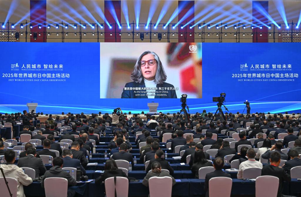 10月28日,2025年世界城市日中国主场活动开幕式现场发布《落实联合国2030年可持续发展目标 重庆城市自主贡献报告(2025)》。新华社记者 陈诚 摄