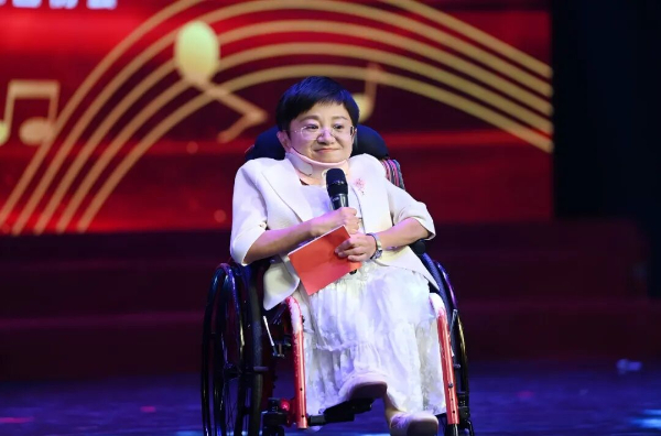 在天津市第三十三次全国助残日活动现场,魏瑞红在舞台上发言。图片来源:新华社
