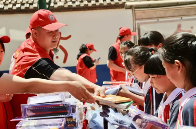陆浩给孩子们发放书本。受访者供图