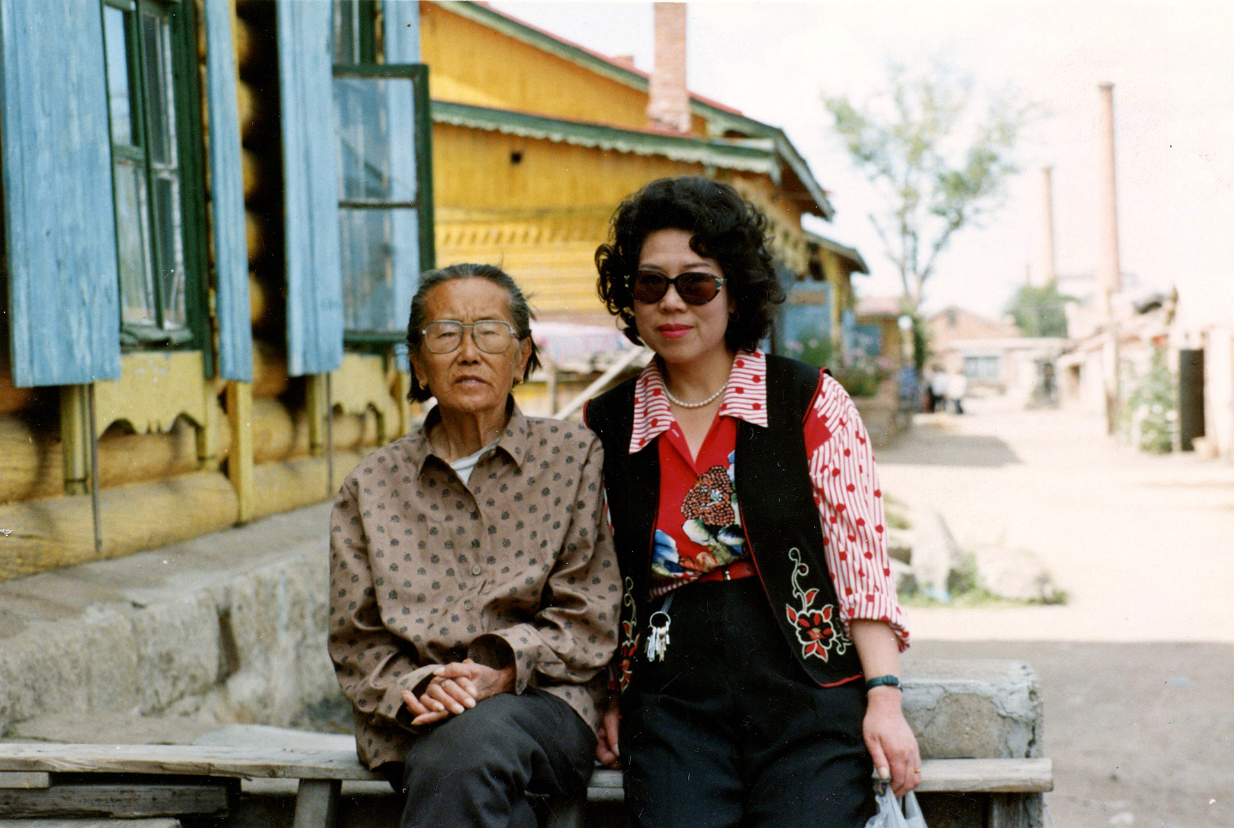 1995年,母亲张崇芝与笔者妻子马淑湘在满洲里电报街20号老宅前合影。