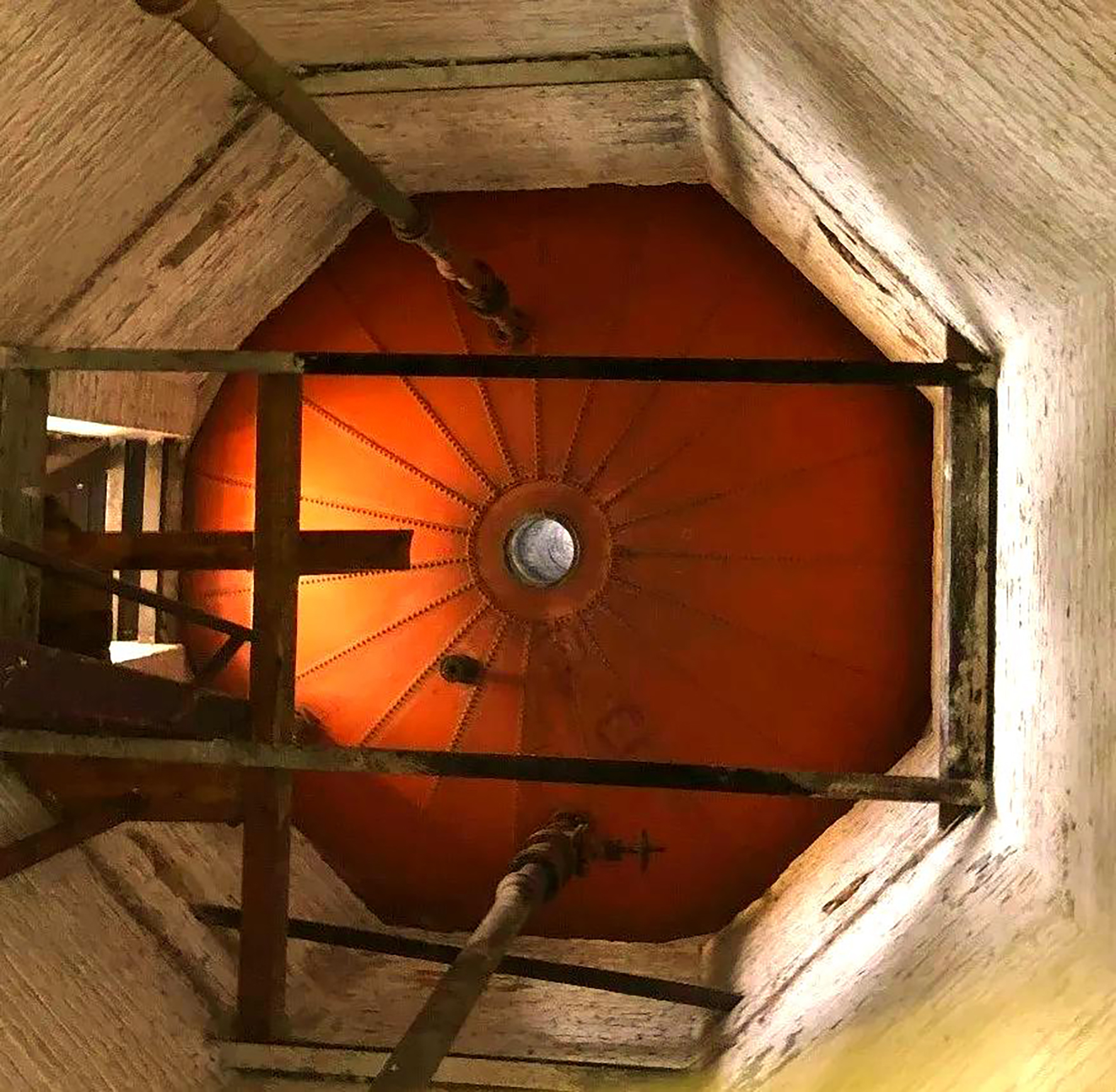 笔者曾于2023年夏天到遗存的双子水塔处实地考察,发现遗存的水塔已被修葺一新。水塔没有锁门,塔内散发着浓重的油漆味,地面上还堆放着涂料、油漆桶以及粉刷工具,显然是刚刚粉刷完毕。仰头望去,头顶上方的水箱清晰可见,通向水塔的梯子十分陡峭,考虑到梯子刚刚粉刷油漆不久,笔者就没有攀爬上去。水塔的室内没有暖气,也没有取暖的火炉。水塔的东侧有一座小木屋,属于水塔的附属设施,当年管理水塔的人就在那里值班。如今这个小木屋已经废弃,破损不堪,显然这个水塔已经不再服役。政府出资粉刷水塔是出于对中东铁路建筑文物的保护,笔者对此心中甚慰。
